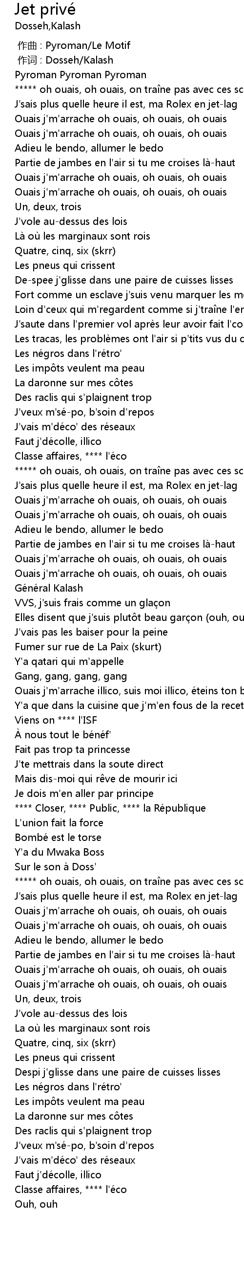 | [02:31.21] | Ouais j' m' arrache oh ouais, oh ouais, oh ouais |