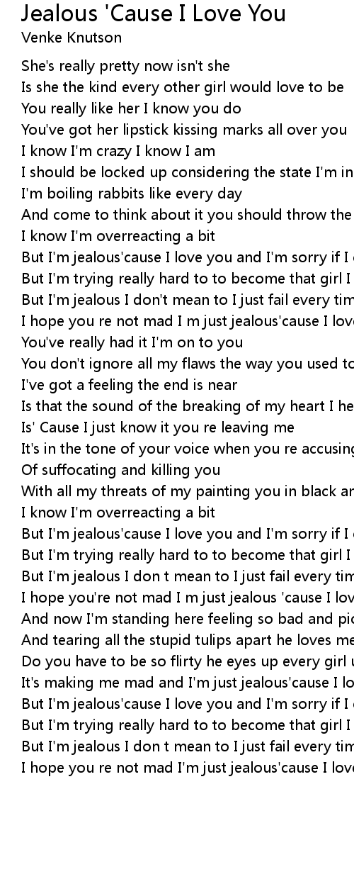 But I'm jealous'cause I love you and I'm sorry if I choke you |