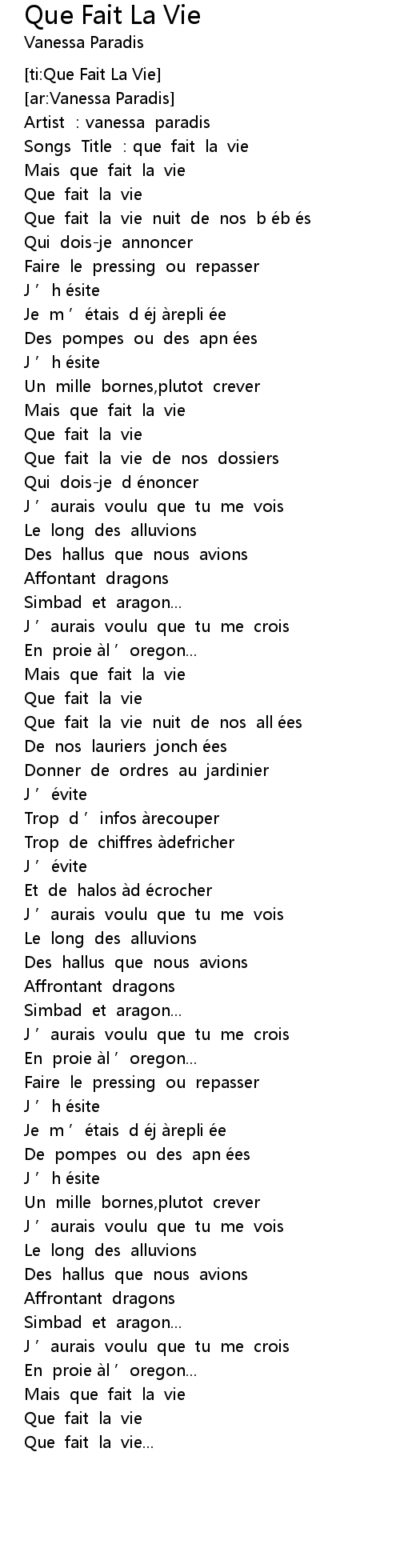 | [ti:Que Fait La Vie] | |