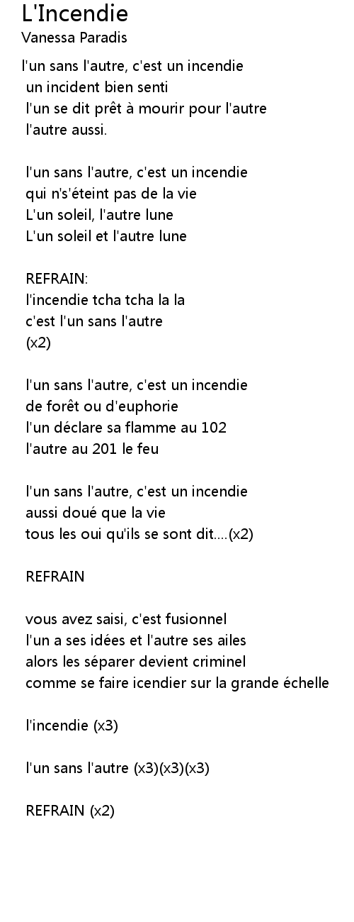 | Song | L'Incendie |
