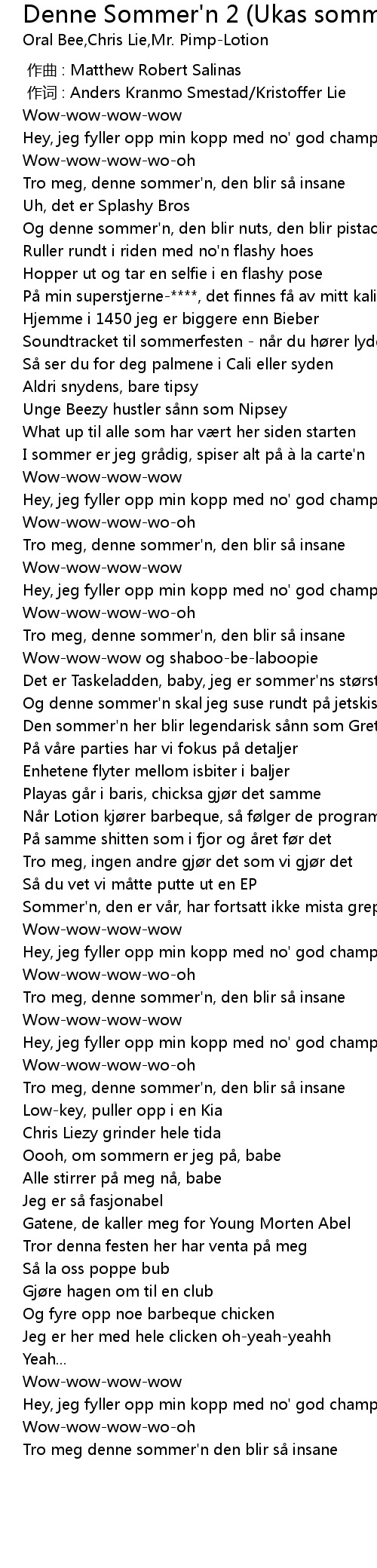 | [00:57.40] | Tro meg, denne sommer' n, den blir s insane |