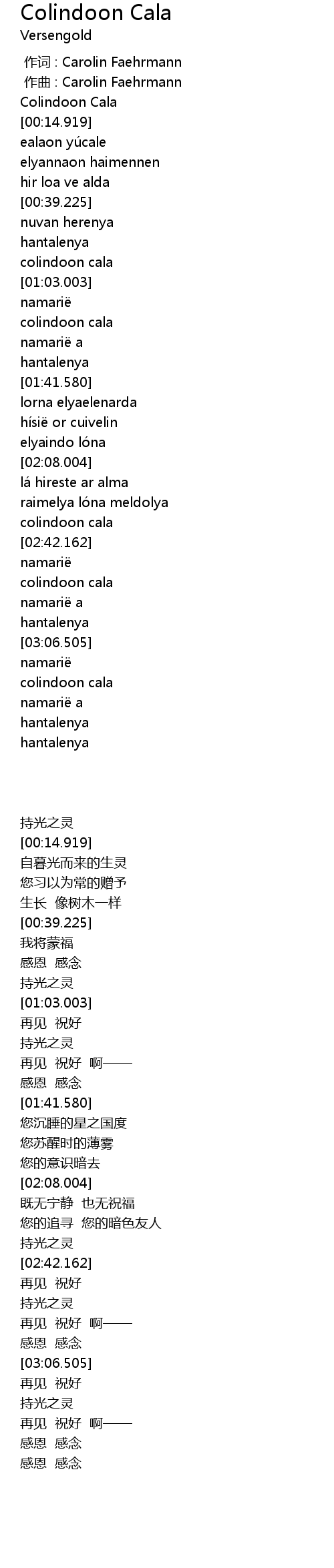 | [00:00.000] | 作词 : Carolin Faehrmann |