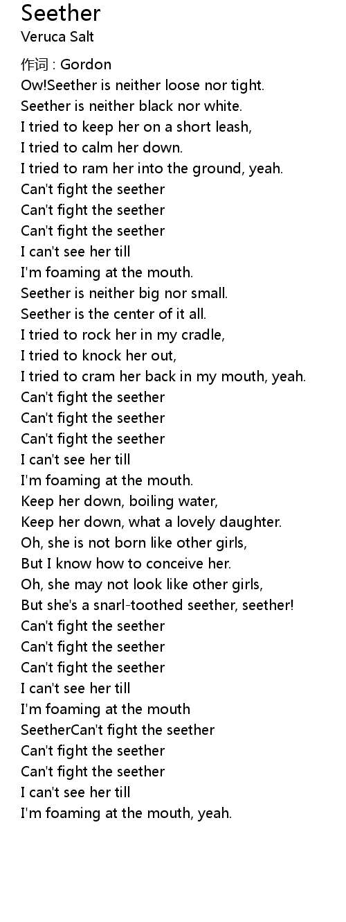 | But she's a snarl-toothed seether, seether! | |