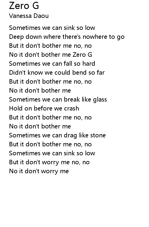 | No it don't bother me Zero G | |