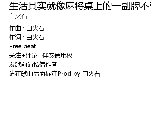 | Song | 生活其实就像麻将桌上的一副牌不管你想不想打上了桌子只有打起走做个清一色或极品关三家丧?不存在的 |