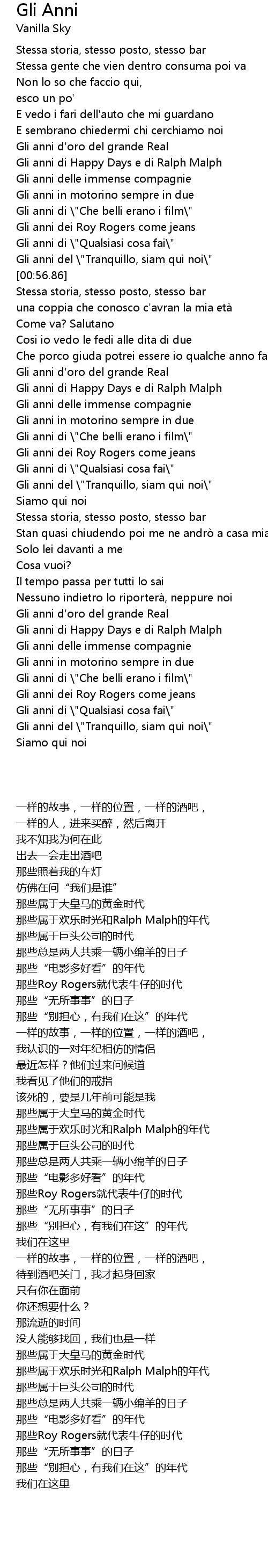 | [00:35.75] | Gli anni di " Che belli erano i film" |