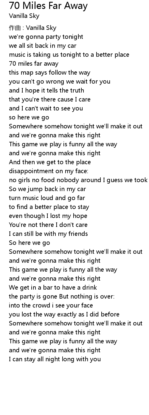 | Somewhere somehow tonight we'll make it out | |