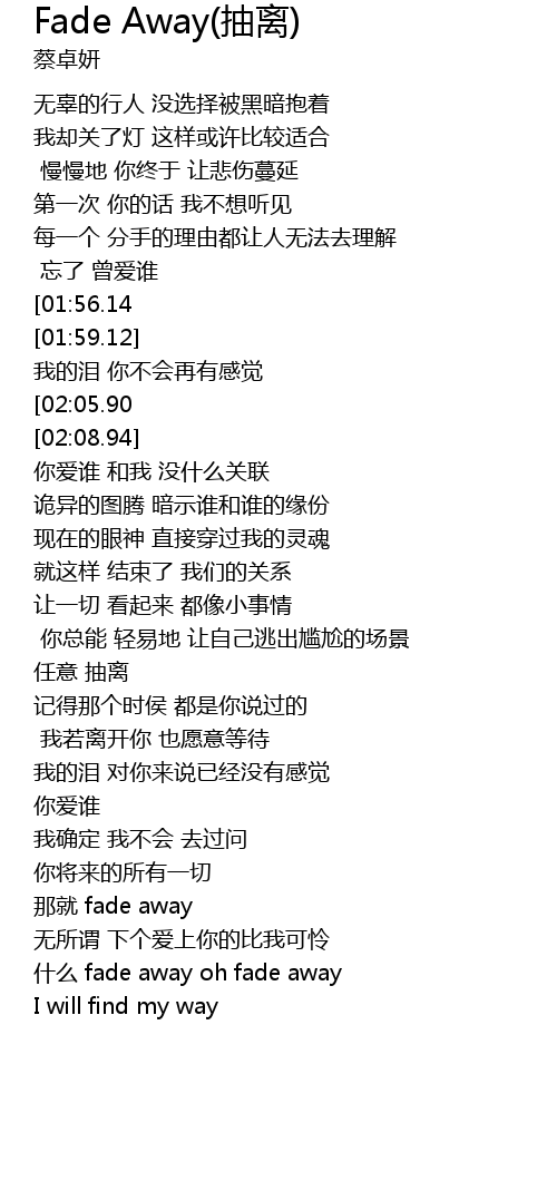 | [03:04.68] | 什么 fade away oh fade away |