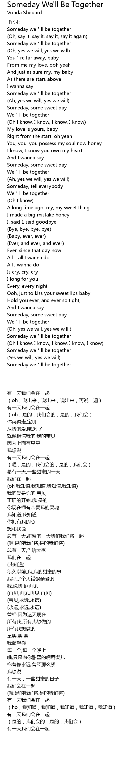 | [00:19.180] | Someday we'll be together |