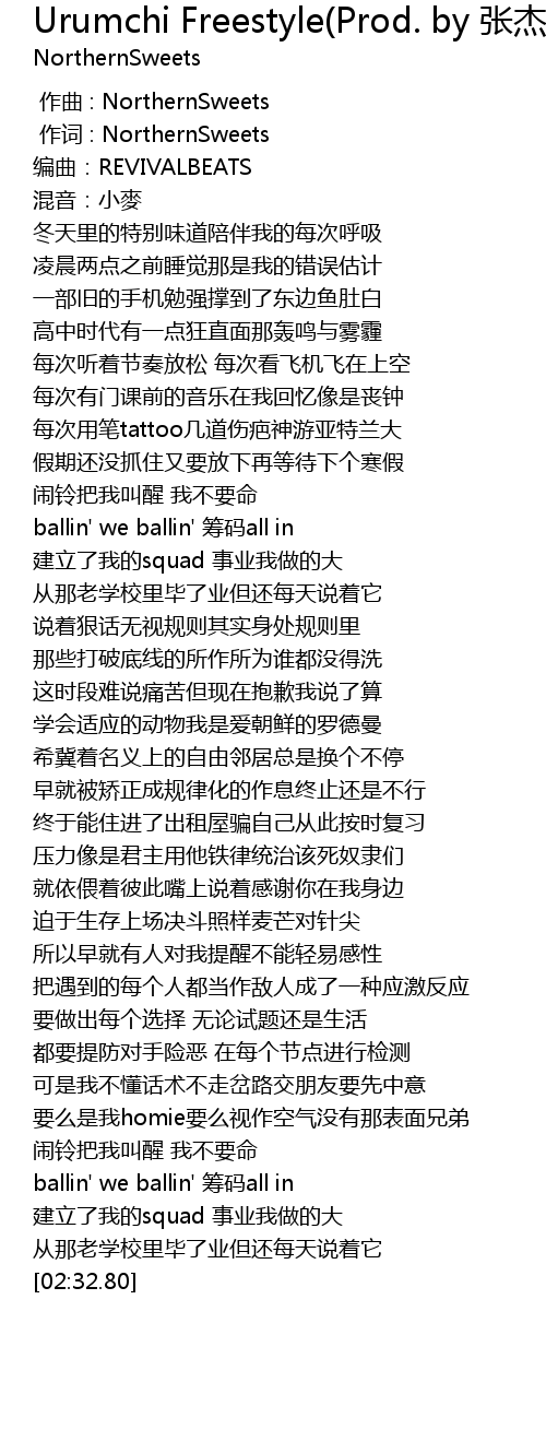 | Song | Urumchi Freestyle(Prod. by 张杰峻) |
