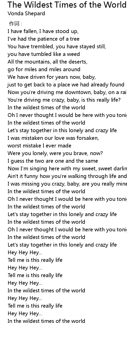 | [01:09.02] | You're driving me crazy, baby, is this really life? |