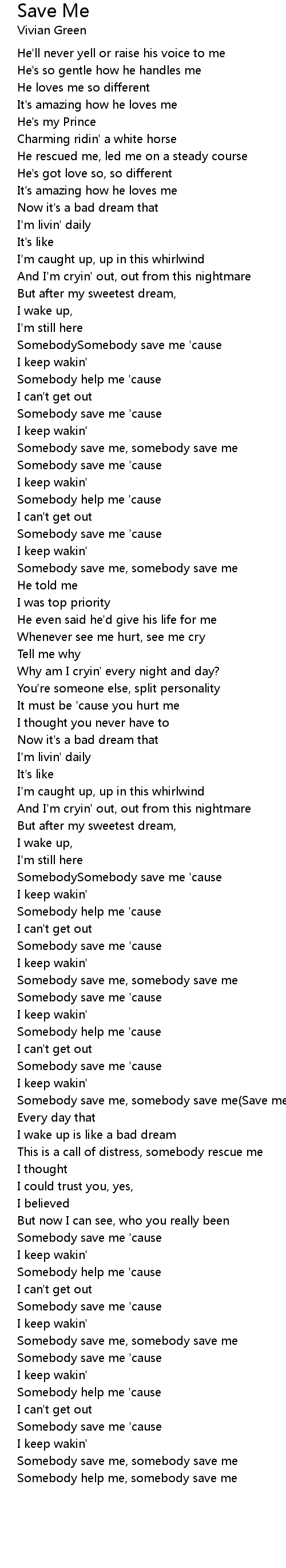 SomebodySomebody save me 'cause |