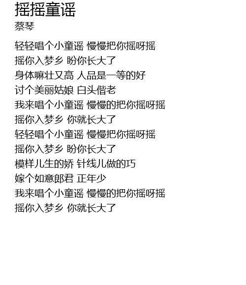 | [01:30.26] | 轻轻唱个小童谣 慢慢把你摇呀摇 |