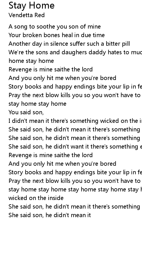 Pray the next blow kills you so you won't have to be here stay home stay home stay home stay home stay home stay home stay home stay home there's something wicked on the inside |