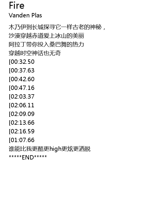 | [02:33.98][02:13.66][01:02.04] | You can fire,you can fly |
