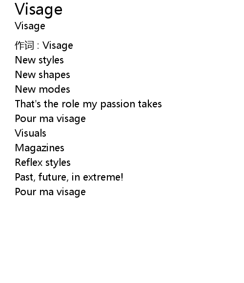 | 作词 : Visage | |