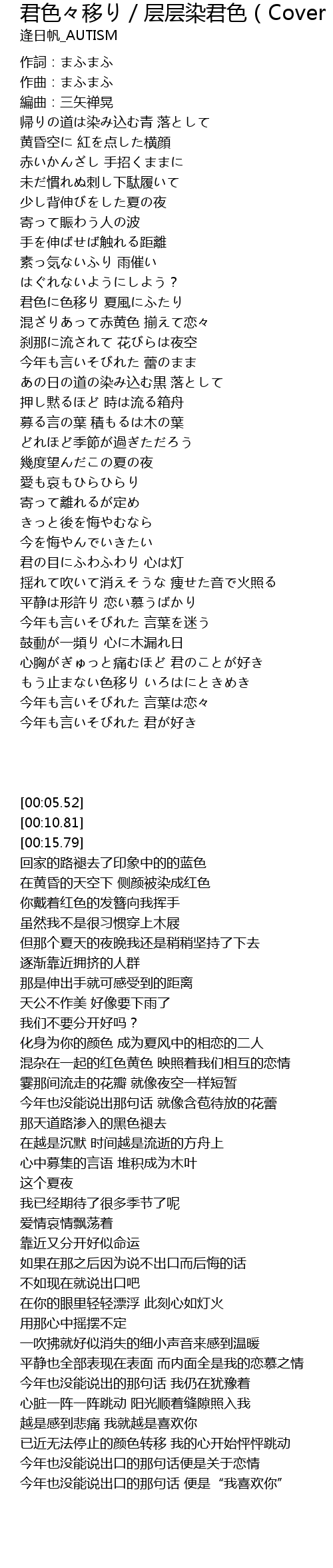 | Song | 君色々移り/层层染君色(Cover まふまふ) |