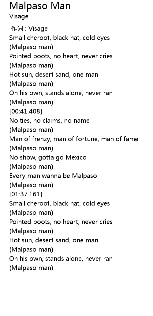 | [00:38.625] | Malpaso man |