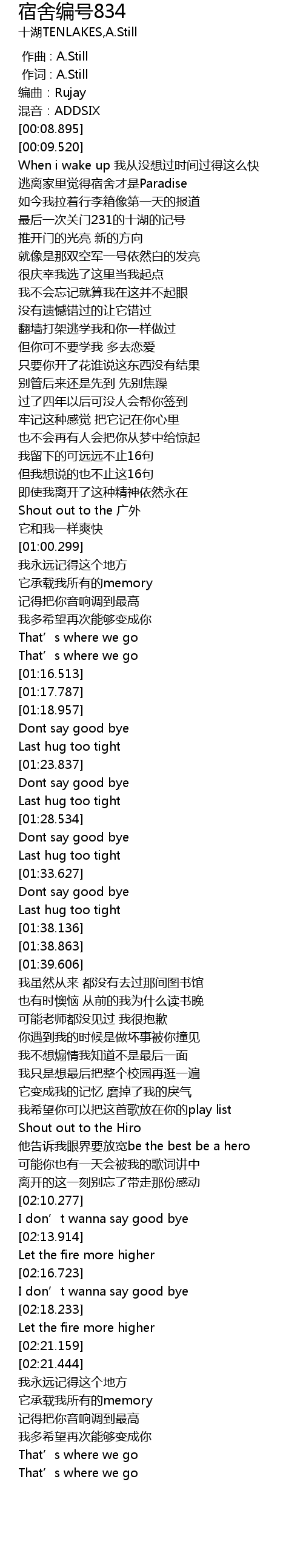 | [00:01.000] | 作词 : A.Still |