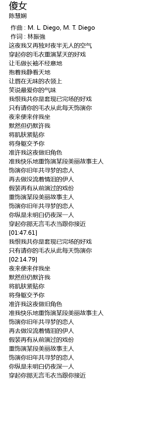 | [00:00.00] | 作曲 : M. L. Diego, M. T. Diego |