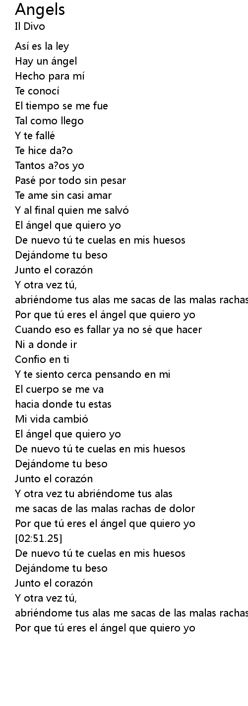 | [02:41.79] | Por que tú eres el ángel que quiero yo |