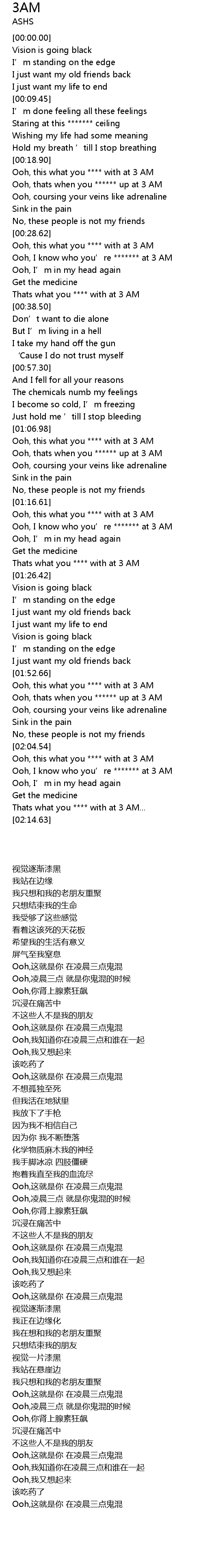 | [01:57.37] | Ooh, thats when you ****** up at 3 AM |