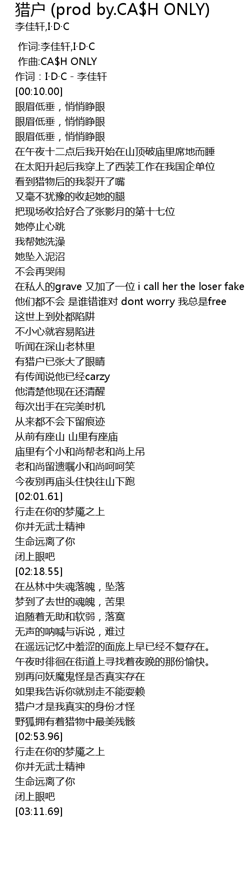 | [01:57.30] | 今夜别再庙头住快往山下跑 |