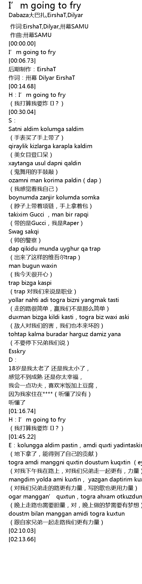 | [00:45.84] | (出来了这样的维吾尔trap) |