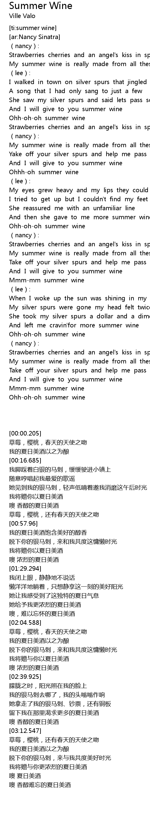 | [01:58.150] | Ohh-oh-oh summer wine |