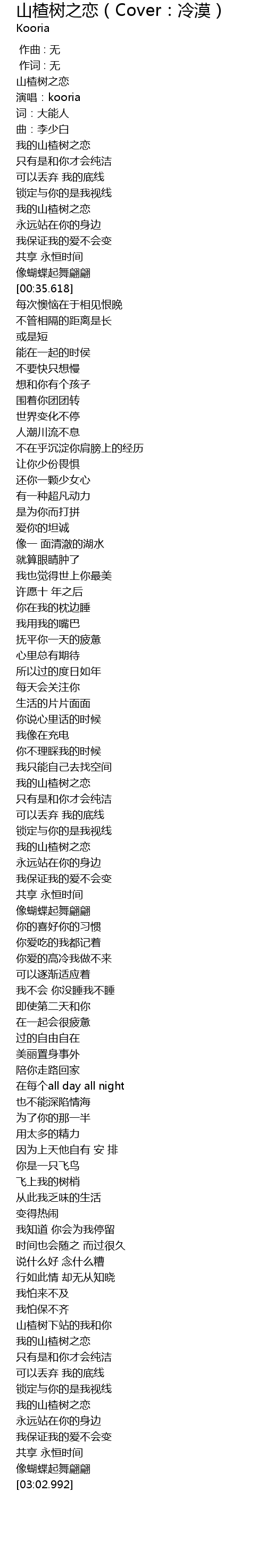 | [02:38.492] | wǒ de shān zhā shù zhī liàn |