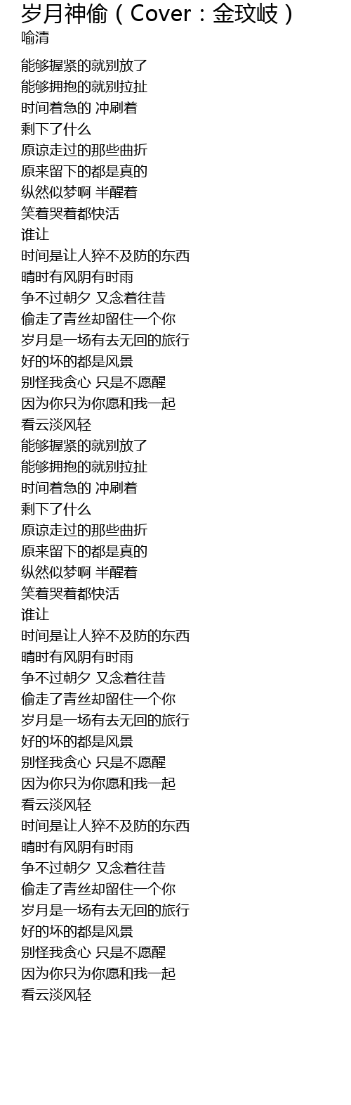 | [01:11.88] | suì yuè shì yī chǎng yǒu qù wú huí de lǚ xíng |