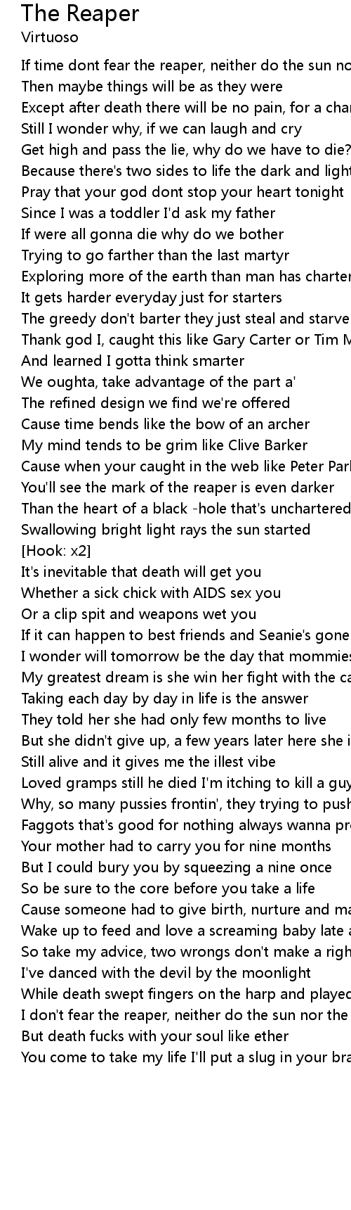 I don't fear the reaper, neither do the sun nor the wind or the rain |