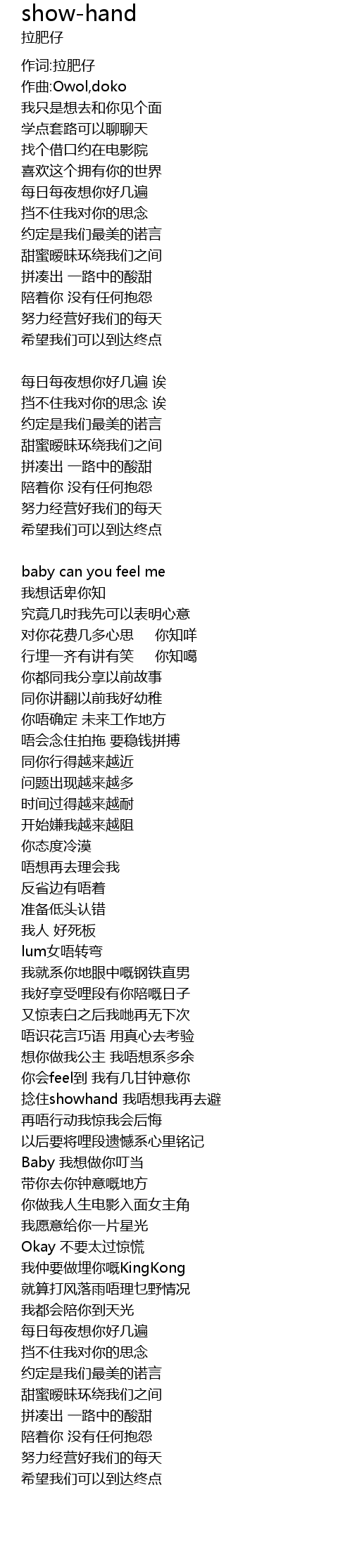 | niǎn zhù showhand wǒ wú xiǎng wǒ zài qù bì | |