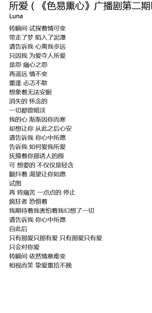 | [01:20.468] | 只因我 为爱夺人所爱 |