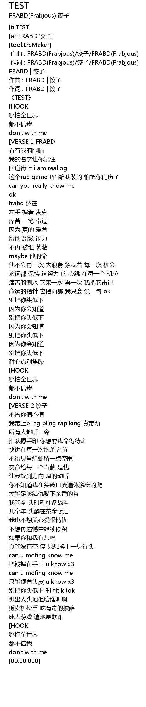 | [00:07.059] | 作词 : FRABD | 饺子 |
