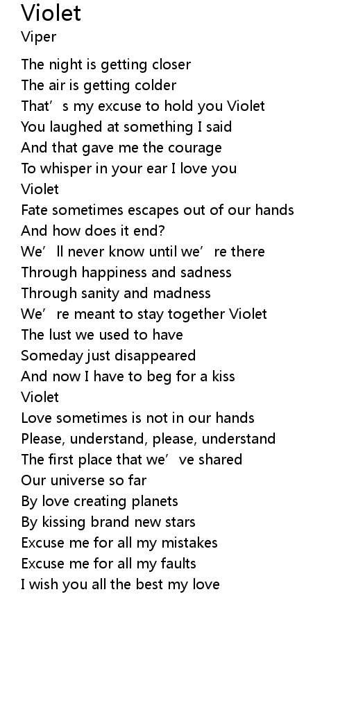 | That' s my excuse to hold you Violet | |
