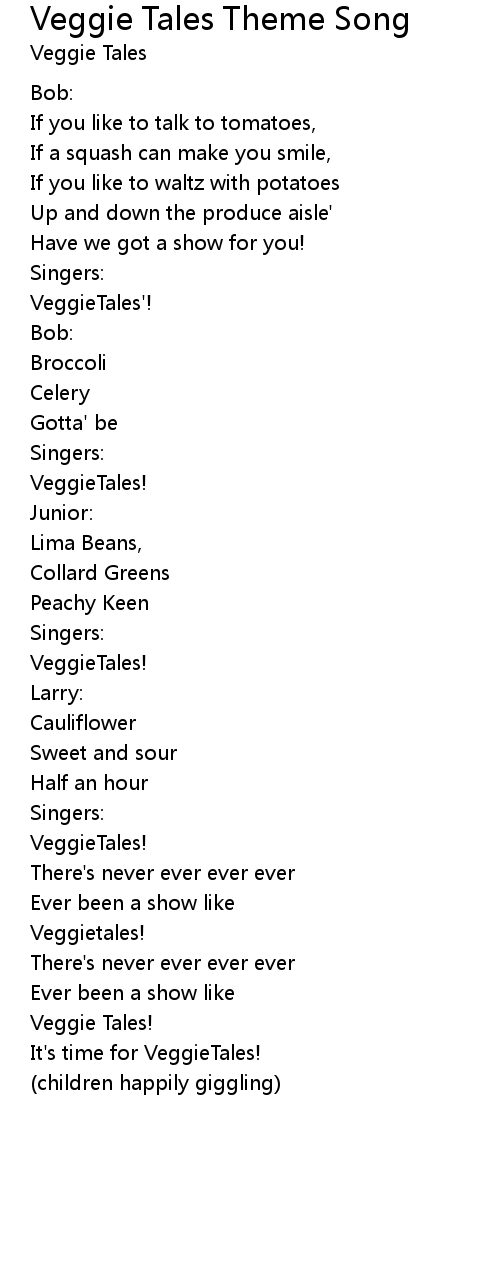 Veggie Tales Theme Song Lyrics