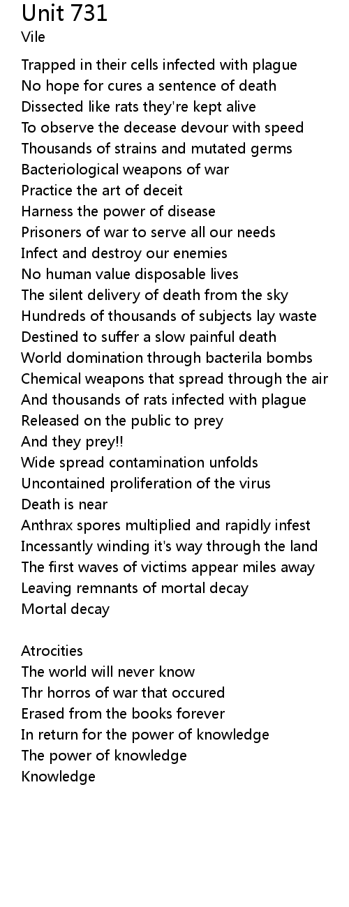 Unit 731 Lyrics