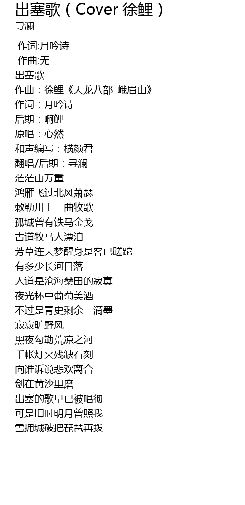 | [01:19.364] | 出塞的歌早已被唱彻 |