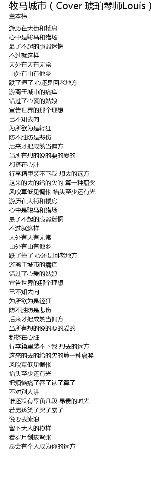 | [01:40.22] | 风吹草低见惆怅 抬头至少还有光 |