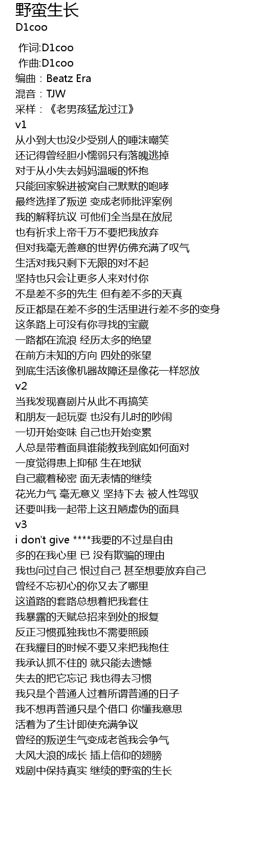 | [02:15.287] | i don't give ****我要的不过是自由 |