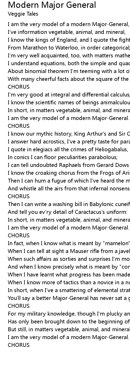 I answer hard acrostics, I've a pretty taste for paradox, |