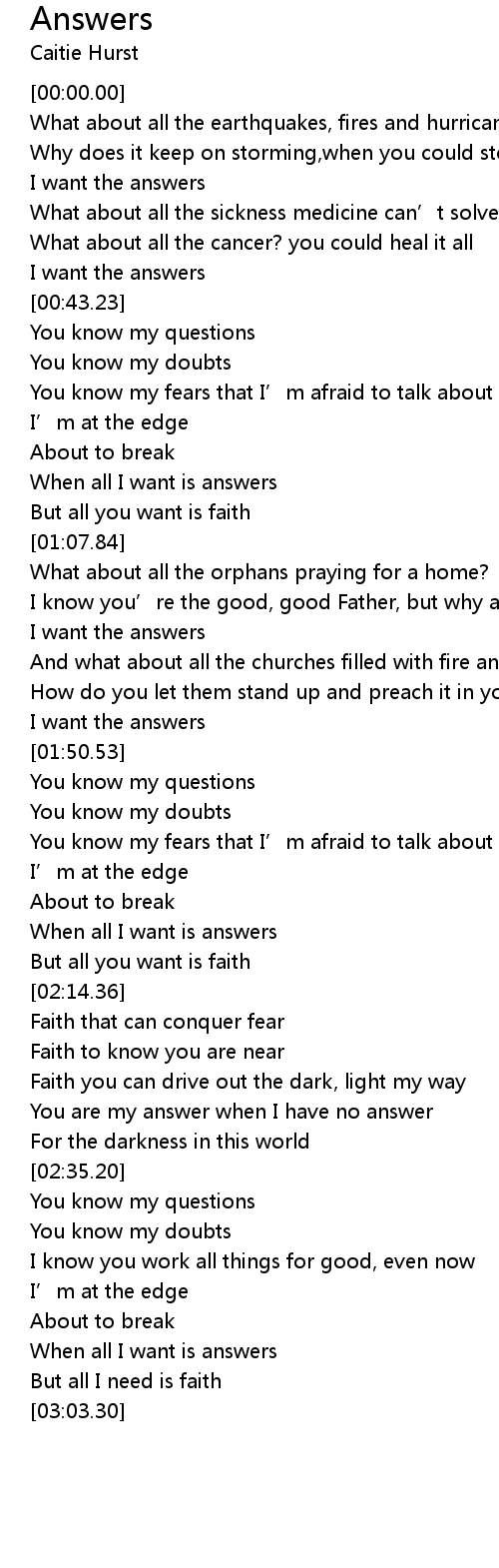 | [00:40.58] | I want the answers |