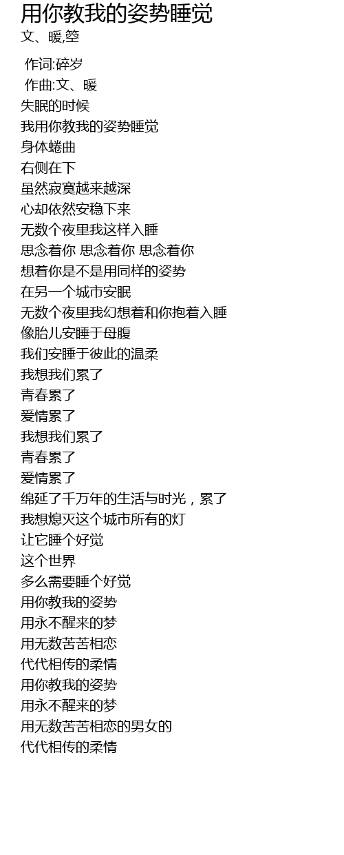 | [00:37.93] | 我用你教我的姿势睡觉 |