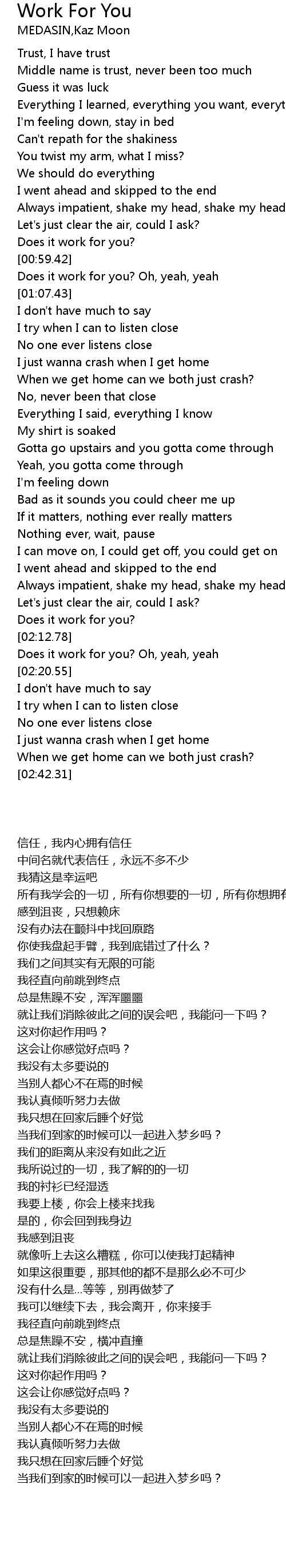 | [02:18.74] | Does it work for you? Oh, yeah, yeah |