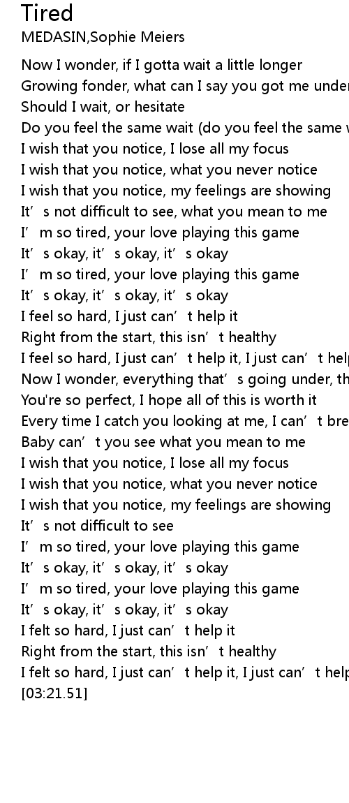 | [02:37.62] | I’m so tired, your love playing this game |