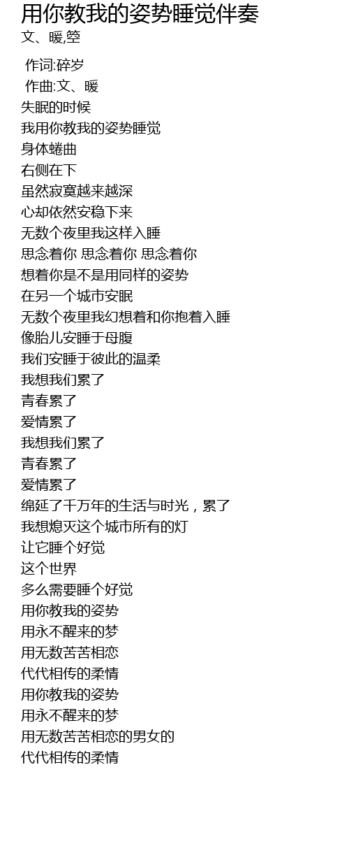用你教我的姿势睡觉伴奏 yong ni jiao wo de zi shi shui jiao ban zou Lyrics