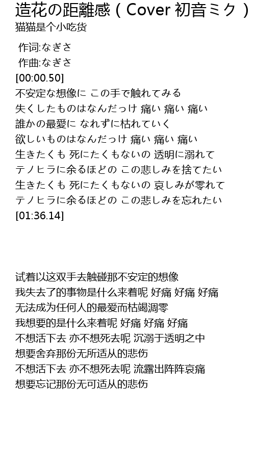 | [00:40.53] | 失くしたものはなんだっけ 痛い 痛い 痛い |