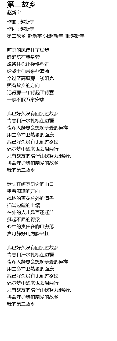 | 第二故乡-赵新宇 词:赵新宇 曲:赵新宇 | |
