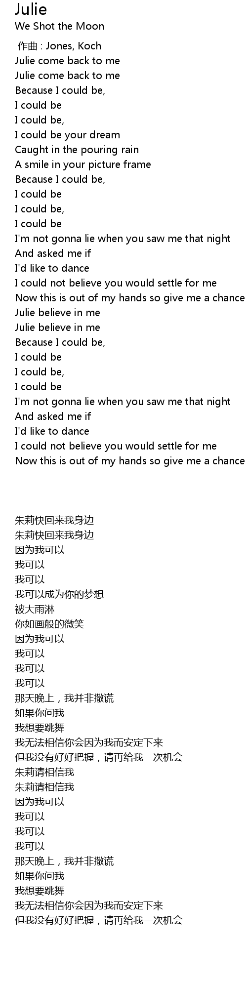 | [00:26.470] | Julie come back to me |